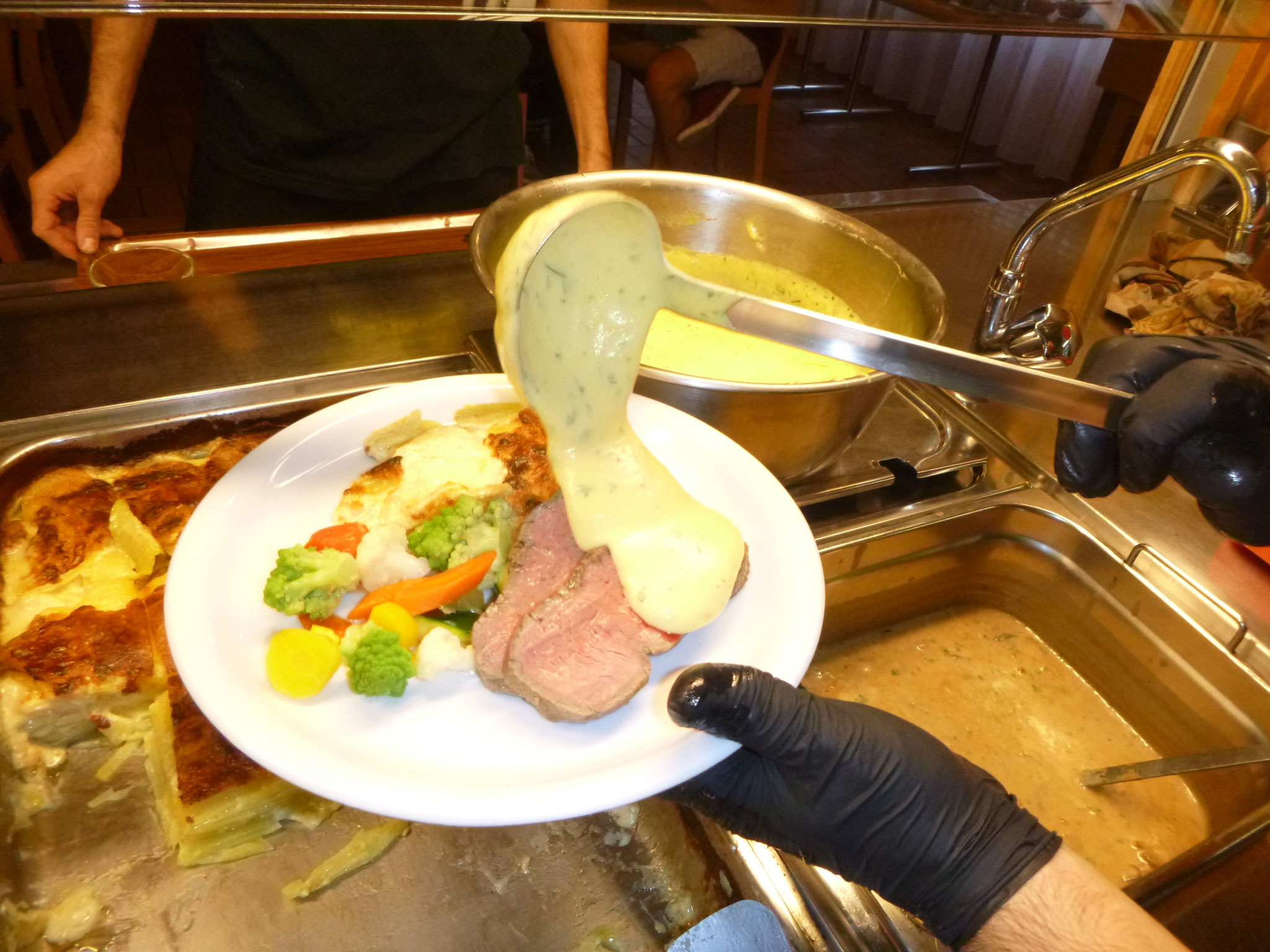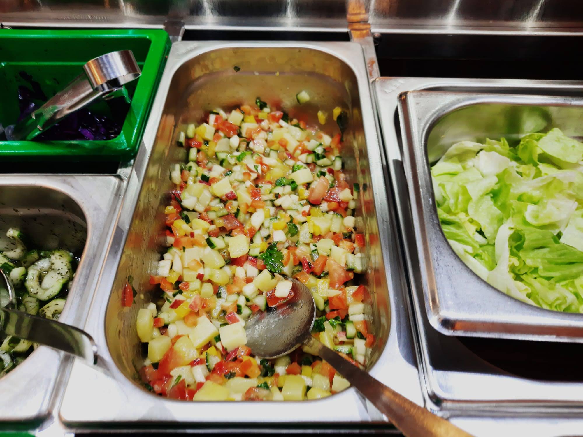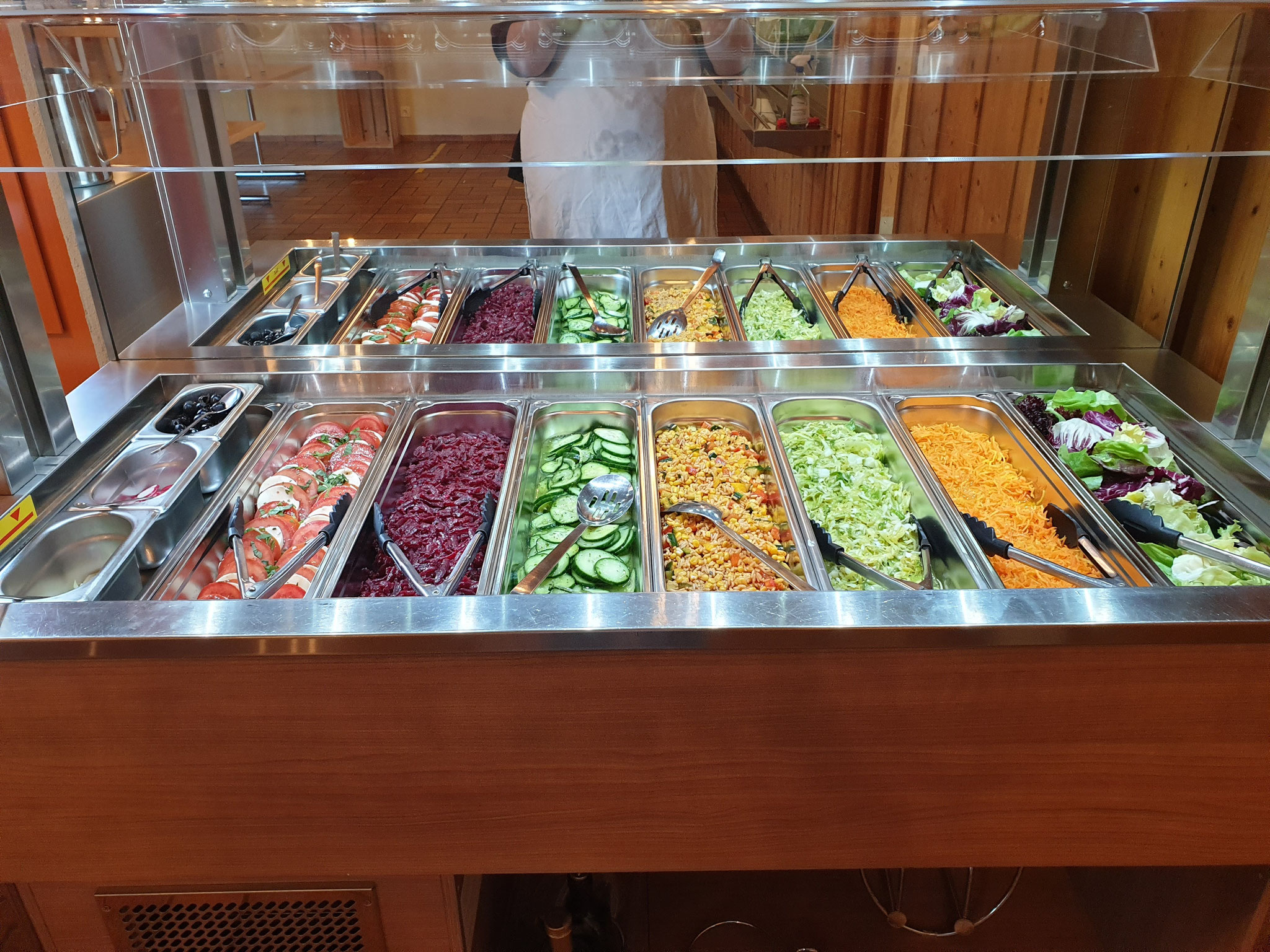 Das motivierte Küchenpersonal bemüht sich täglich um frische, schmackhafte Menus zum Mittag- und zum Abendessen. Ein reichhaltiges Salatbuffet mit vielen verschiedenen Salaten täglich frisch hergestellt steht zu jeder Mahlzeit bereit.